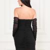 - Knit dress with shirred mesh overlay