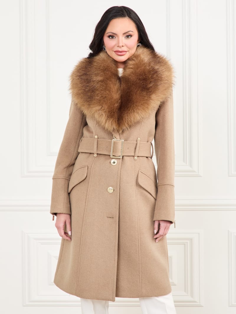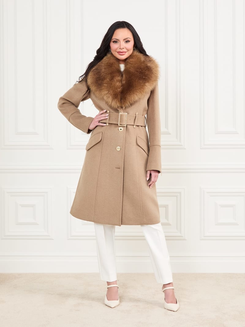 - Oversized faux-fur collar