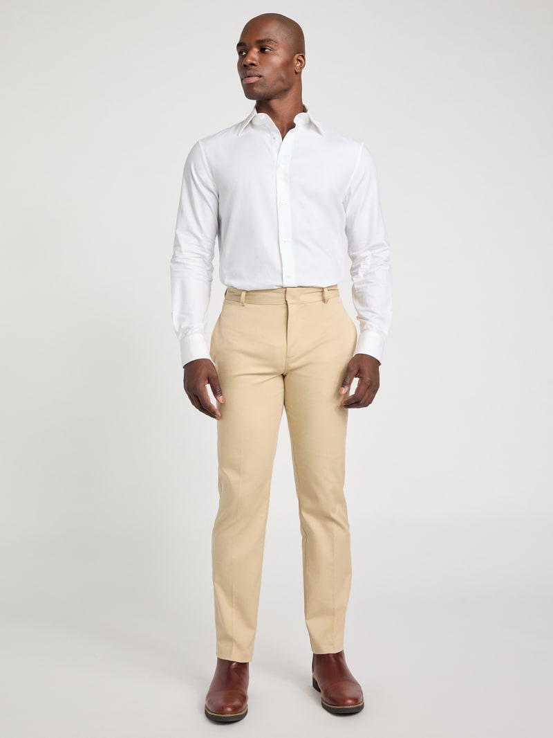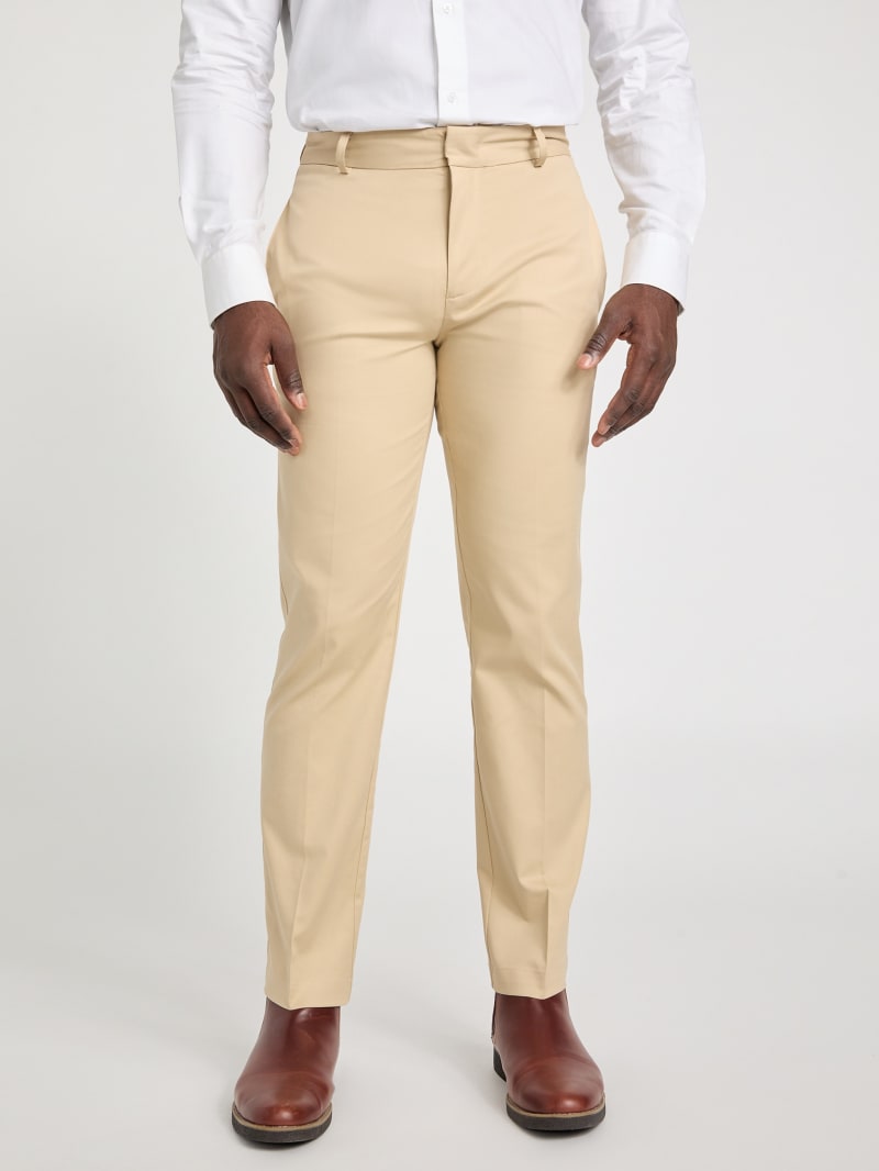 - Mid-rise, sits at hips. Regular fit with straight leg.