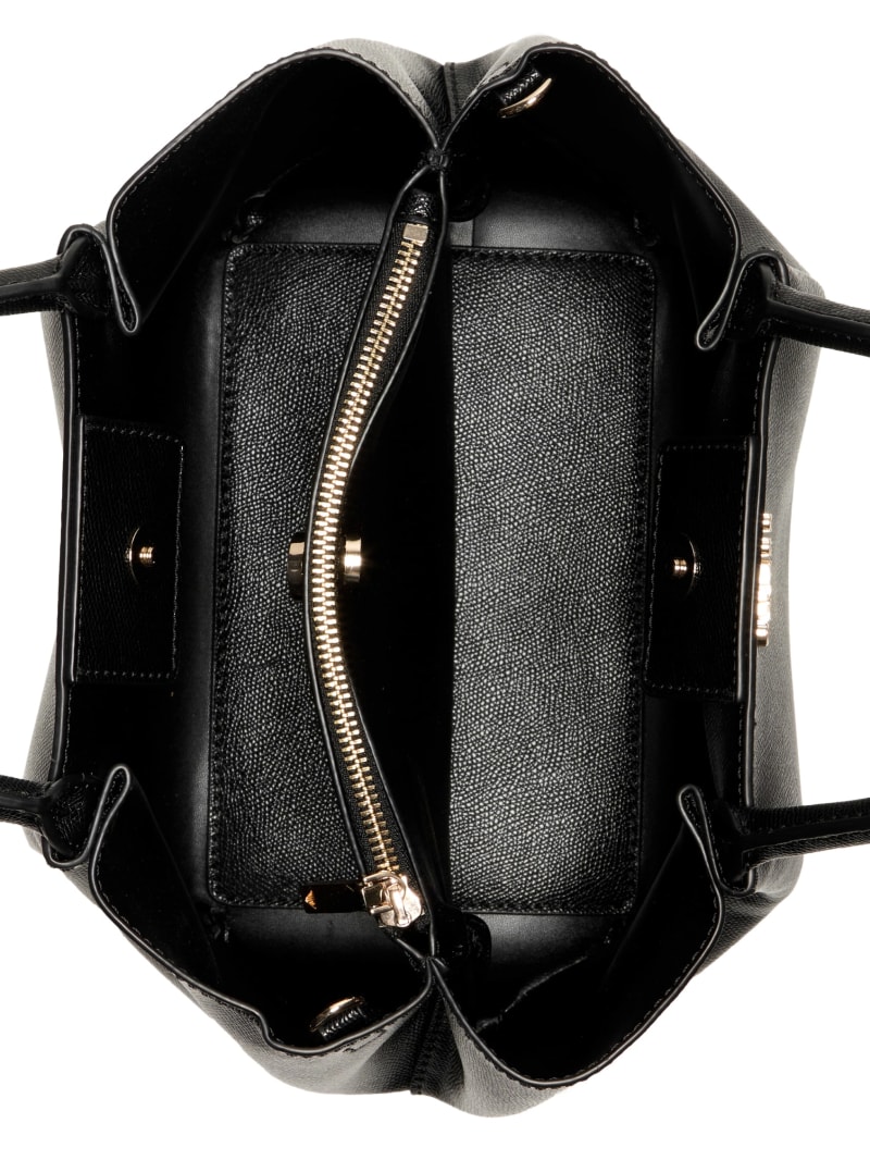 - Top handles with detachable charm. Removable crossbody strap.