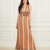 - Wide halter strap with V-neckline