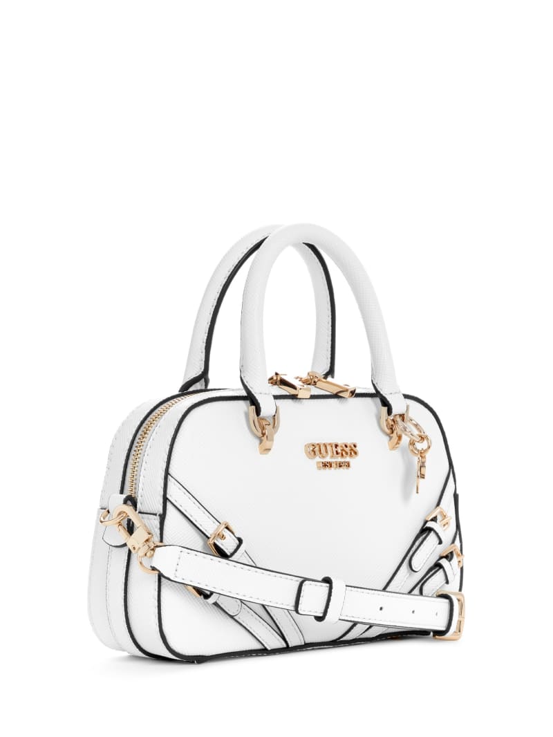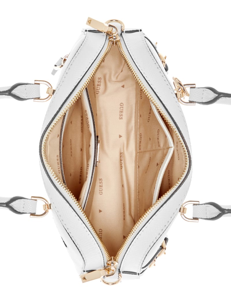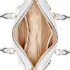 - Rolled top handles with 3.25" drop. Detachable crossbody strap with 22" drop.