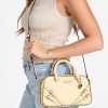 - Rolled top handles with 3.25" drop. Detachable crossbody strap with 22" drop.