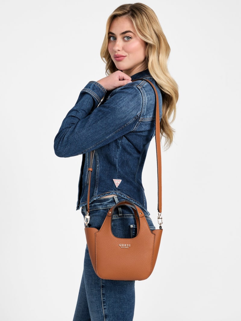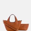 - Top handles with 4.75 drop. Adjustable, removable crossbody strap with 21.75" drop.