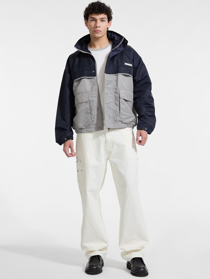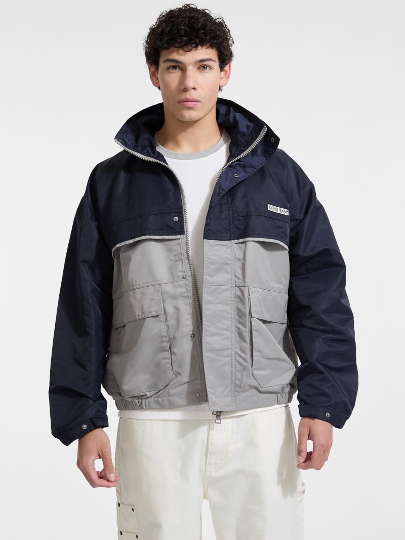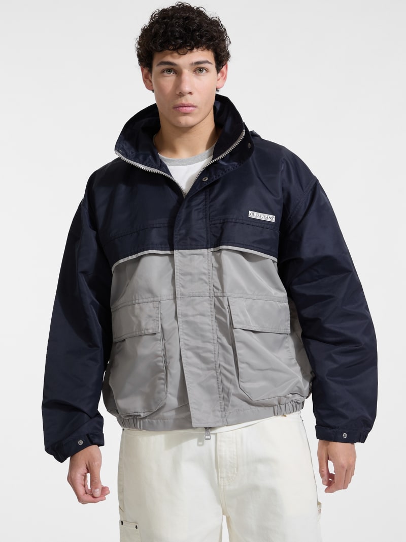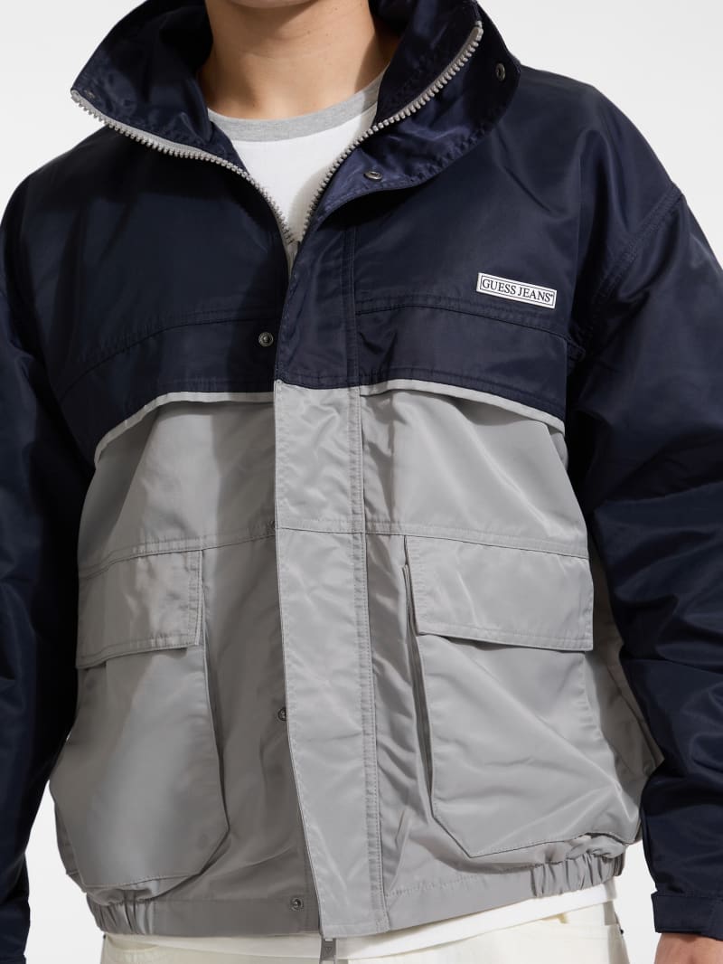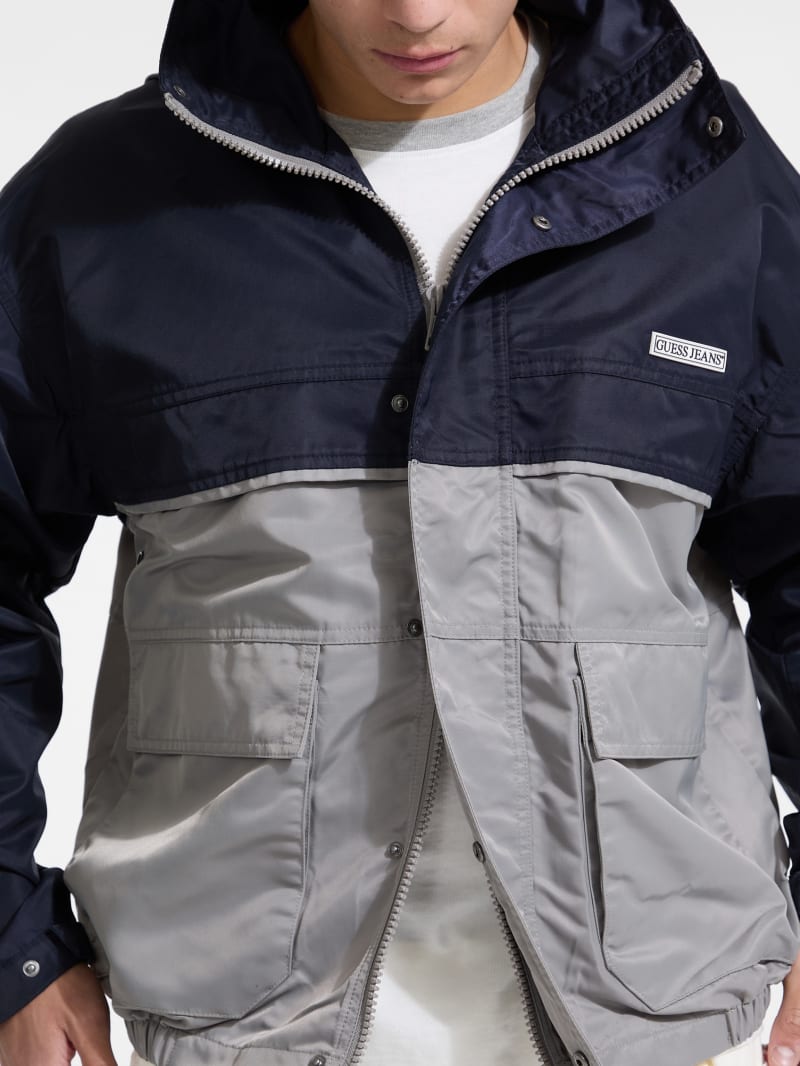 - Color-block woven nylon windbreaker