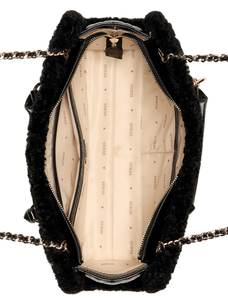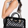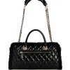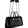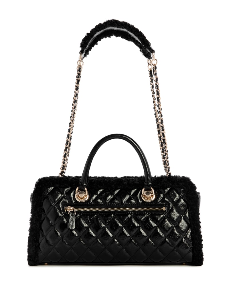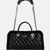 - Top handles with removable charms. Mixed-media shoulder straps.