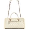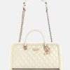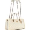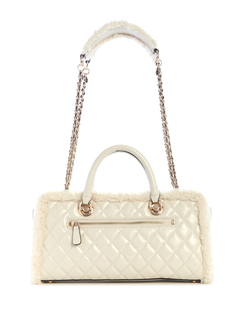 - Top handles with removable charms. Mixed-media shoulder straps.