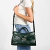 - Top handles with 4" drop. Removable crossbody strap with 22" drop.
