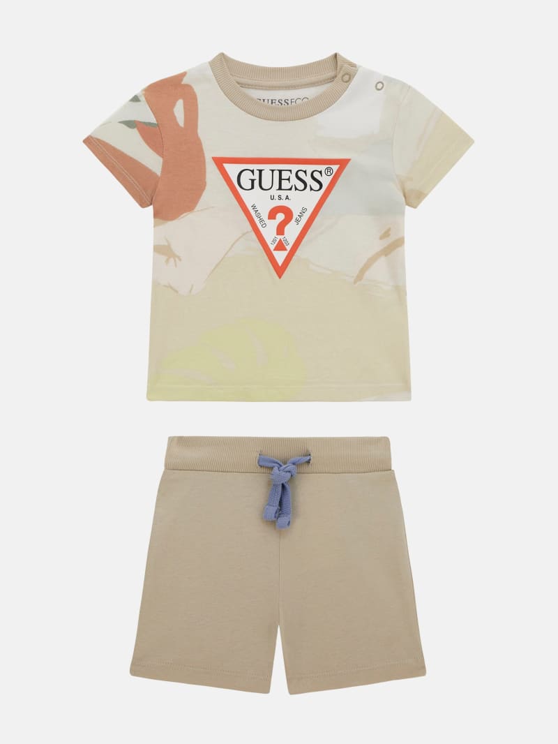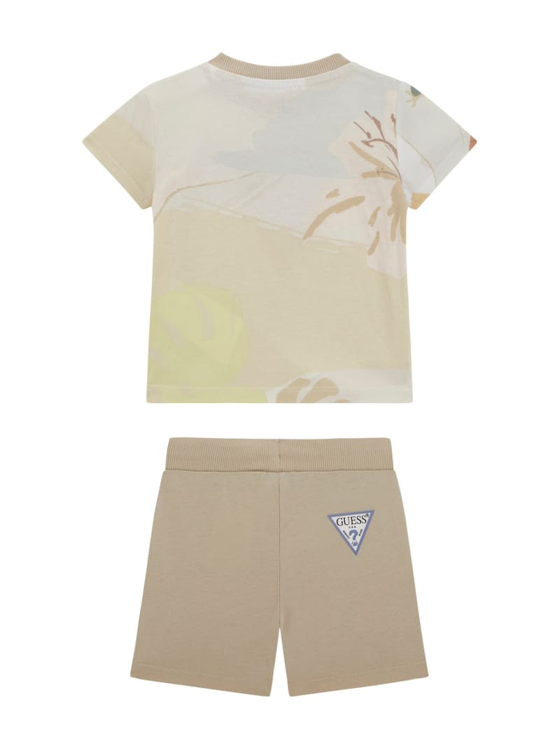 - Short-sleeve crewneck tee with allover desert print and front signature