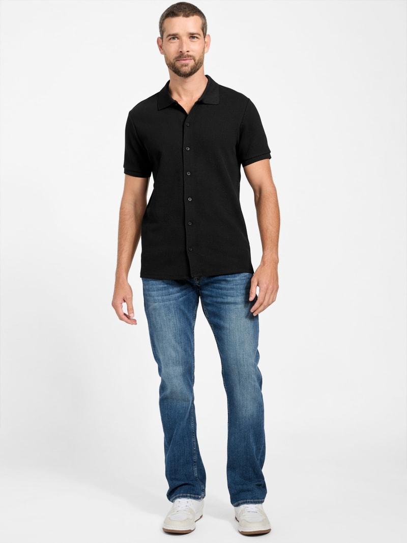 - Self: 69% Organic Cotton, 27% Polyester, 4% Elastane/Spandex. Collar: 100% Polyester. Contains organic cotton.
