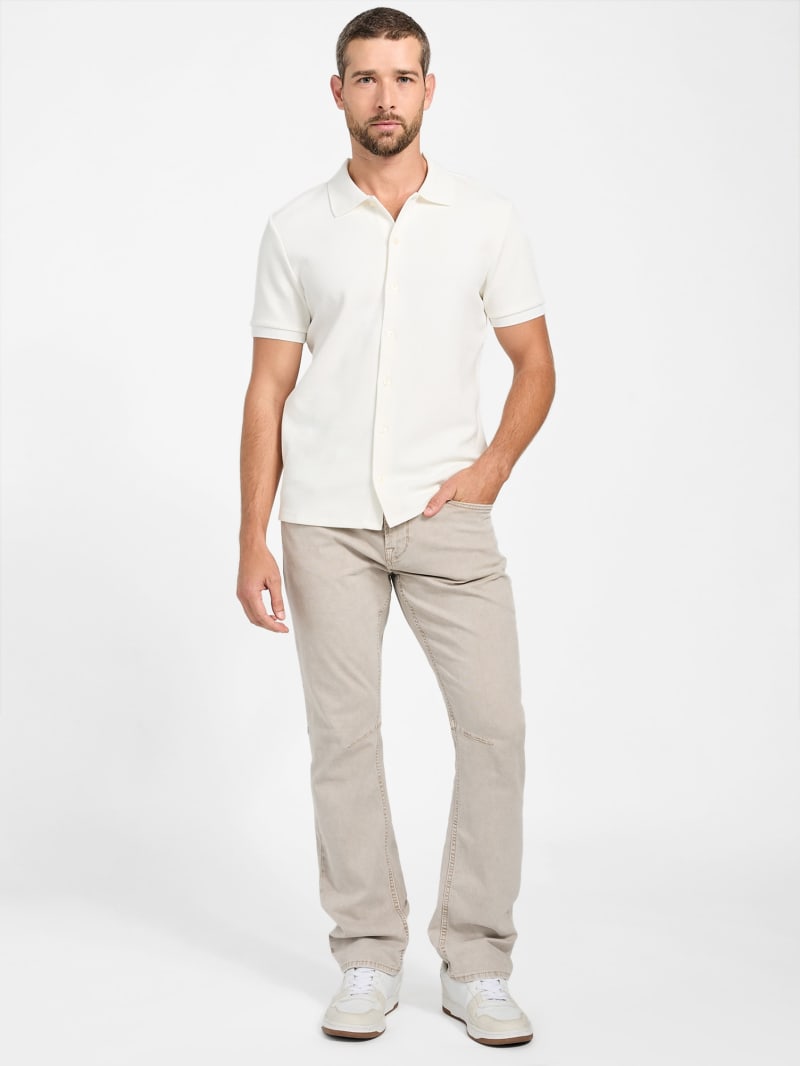 - Self: 69% Organic Cotton, 27% Polyester, 4% Elastane/Spandex. Collar: 100% Polyester. Contains organic cotton.