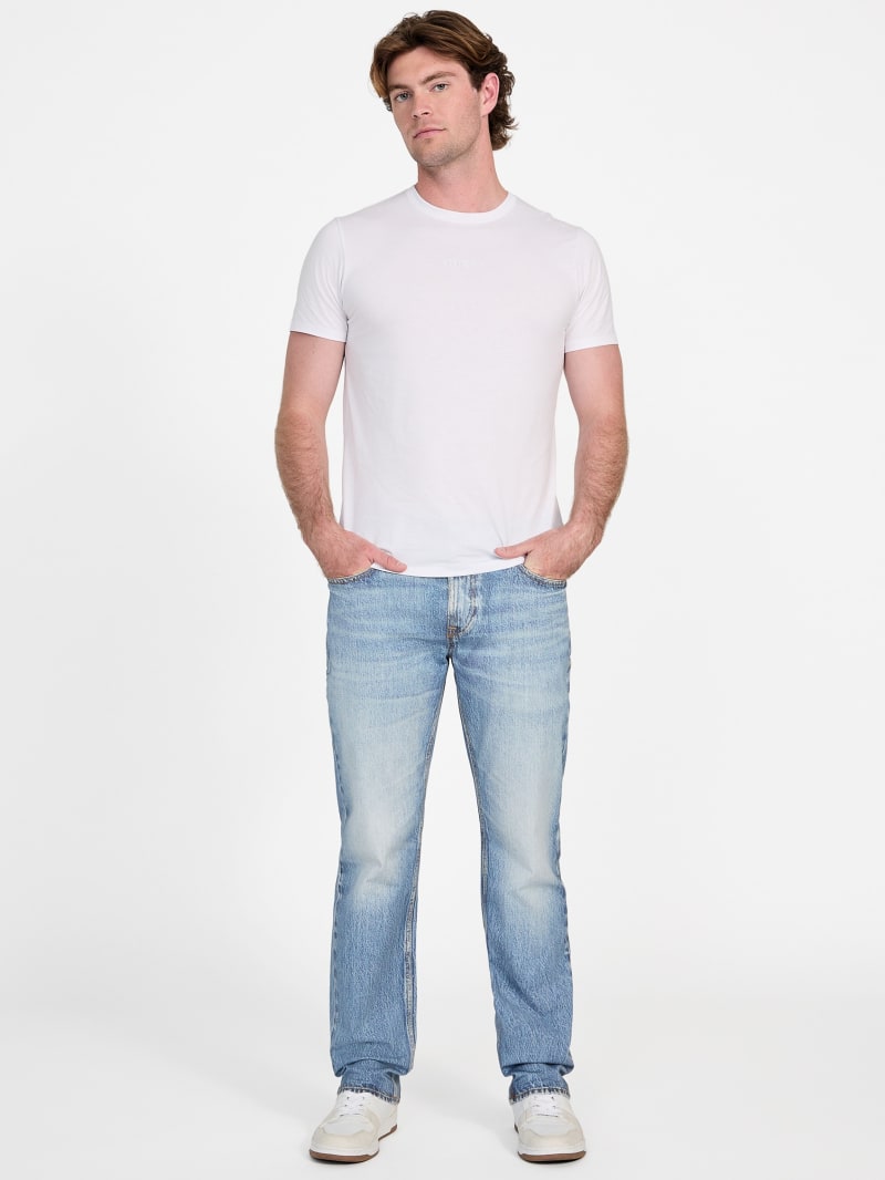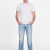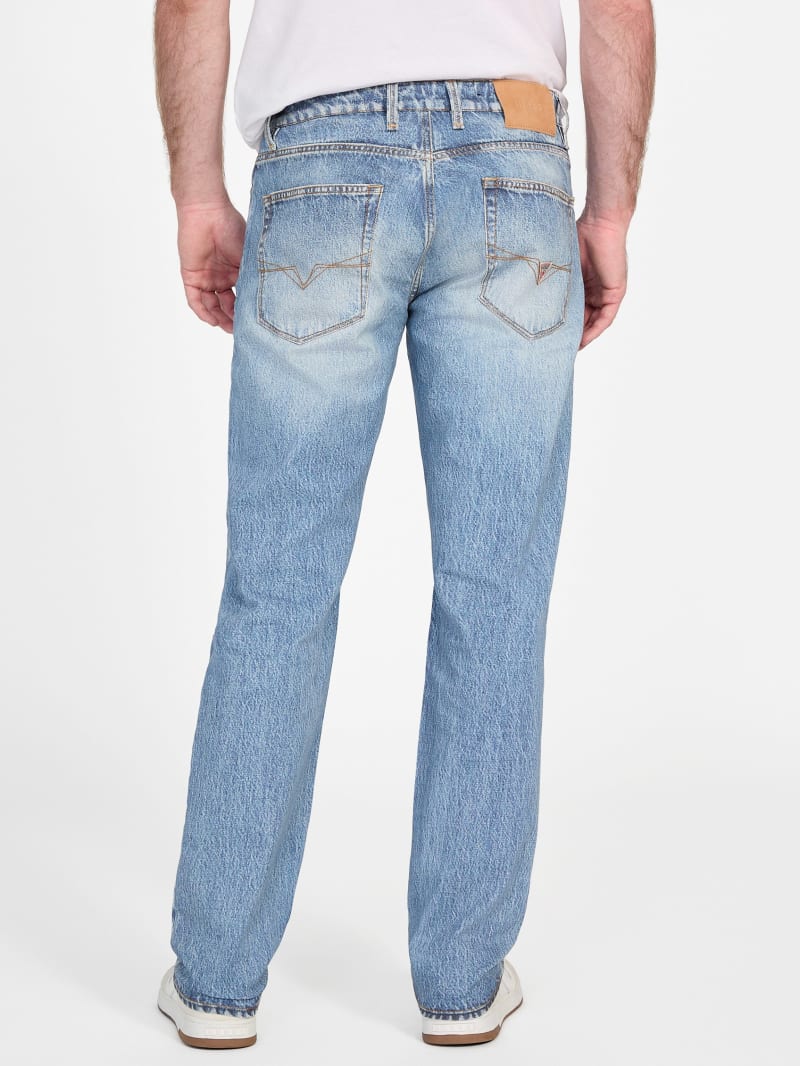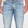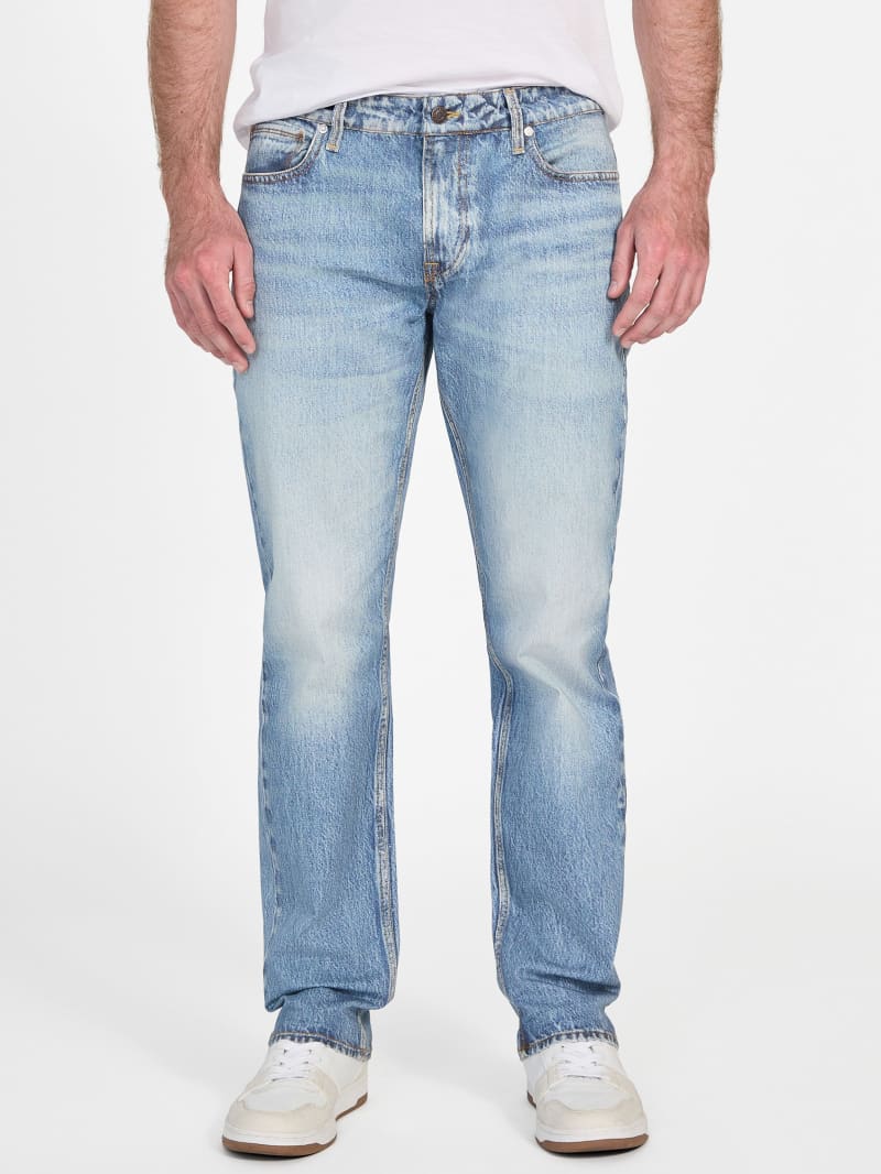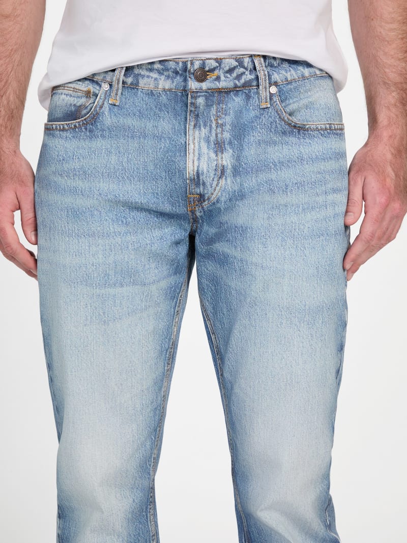 - Mid rise, sits at hips. Slim fit and straight leg.