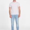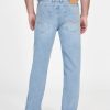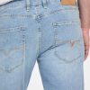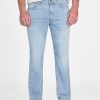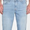 - Light indigo denim with subtle whiskering, fading and pressed seams. Due to the nature of the fabric and wash, each garment has its own unique appearance.