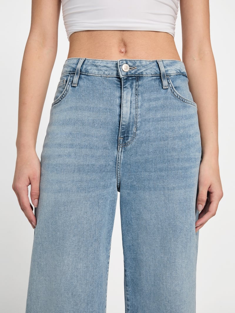 - Medium-wash indigo denim. Each garment has its own unique appearance.