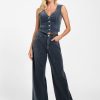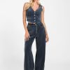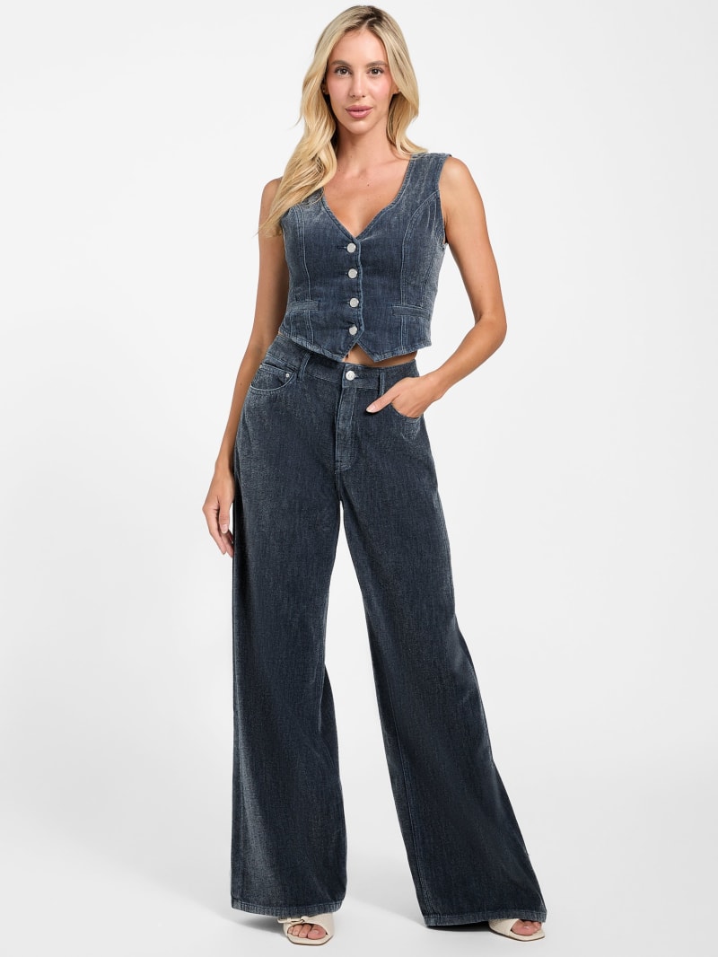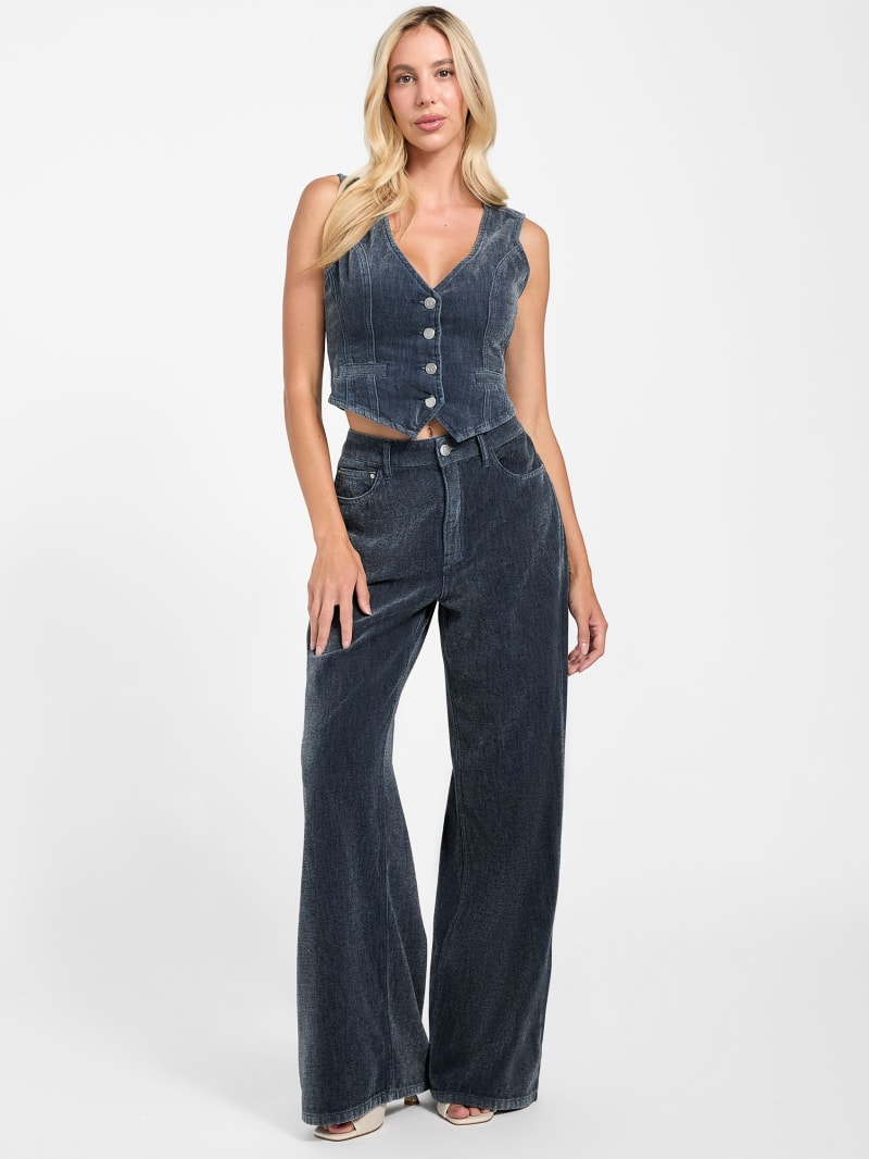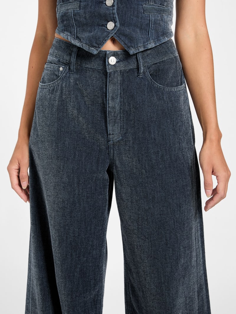 - Garment dyed medium-wash indigo denim. Each garment has its own unique appearance.