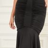 - Smooth front panel with shirring at the sides