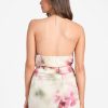 - Halter neckline with chain strap and keyhole front