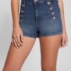 - Five-pocket construction with dual button accents