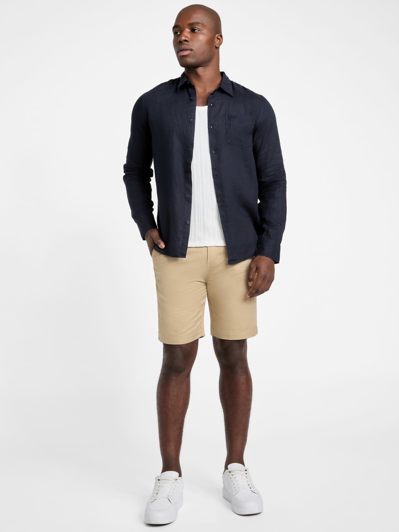 - Twill linen-blend woven shorts