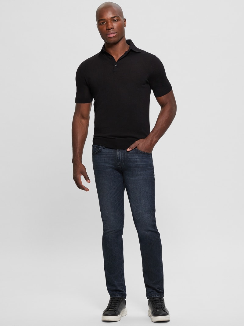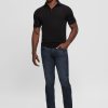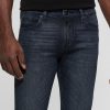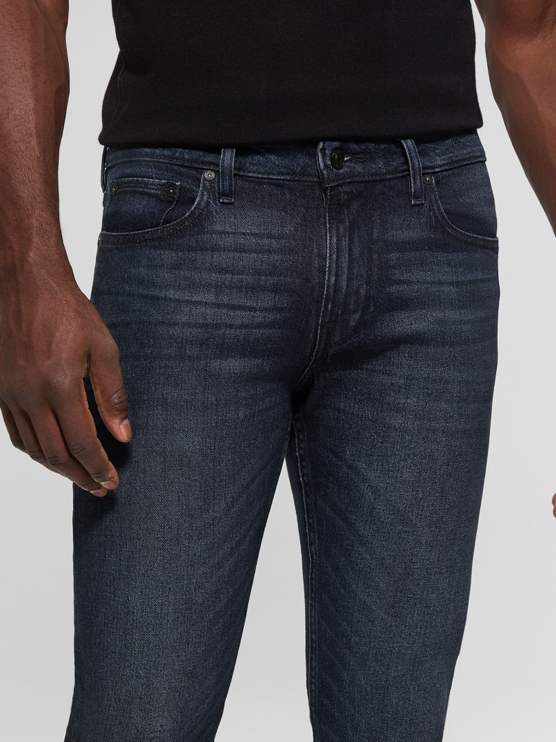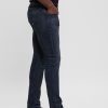 - Mid rise, sits on hips. Slim fit and tapered leg