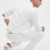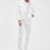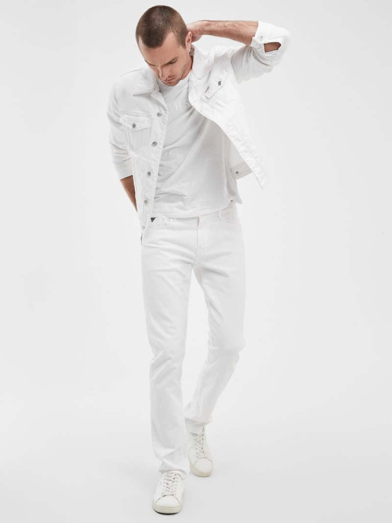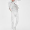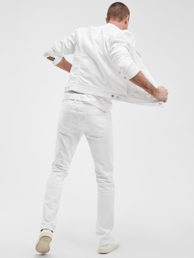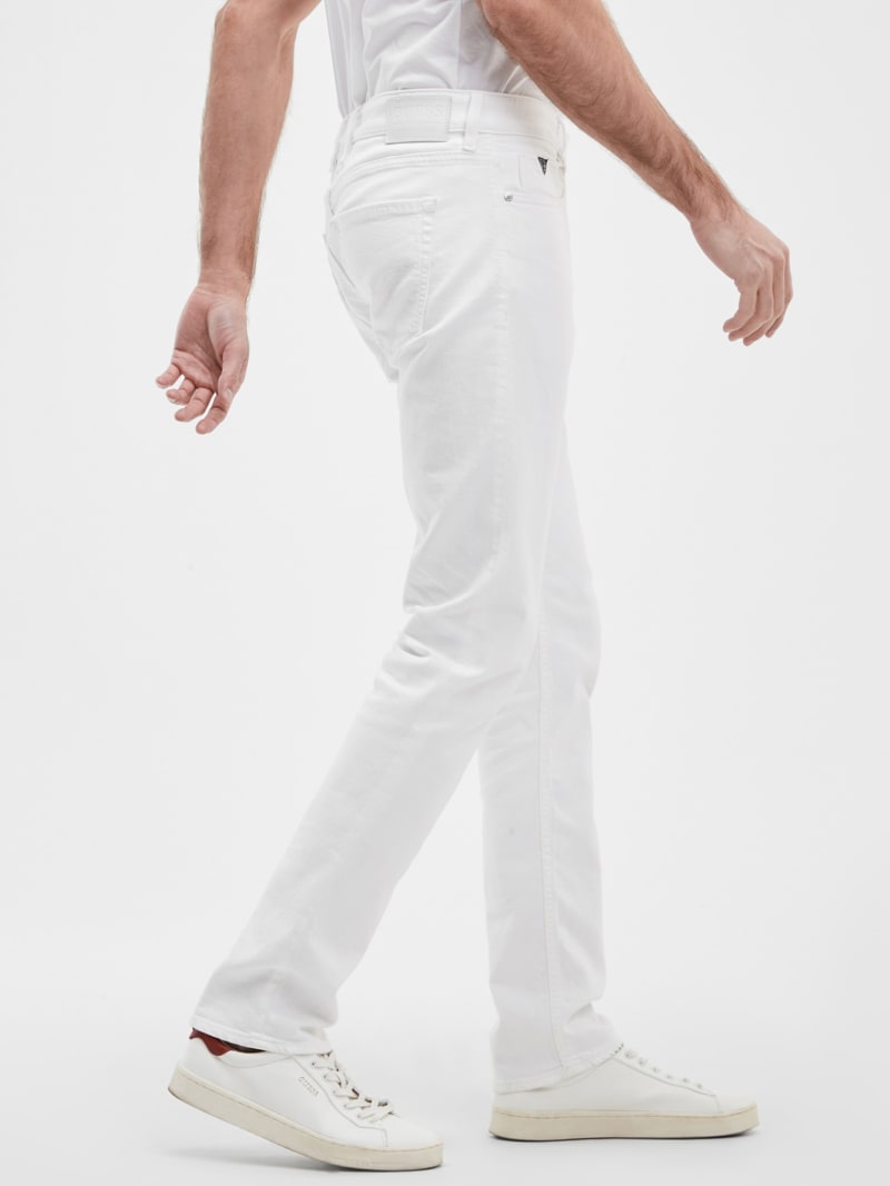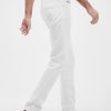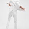 - Mid rise, sits at hips. Slim fit and tapered legs.
