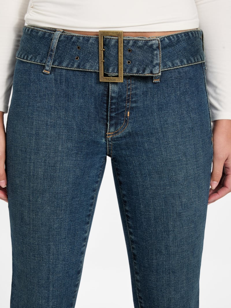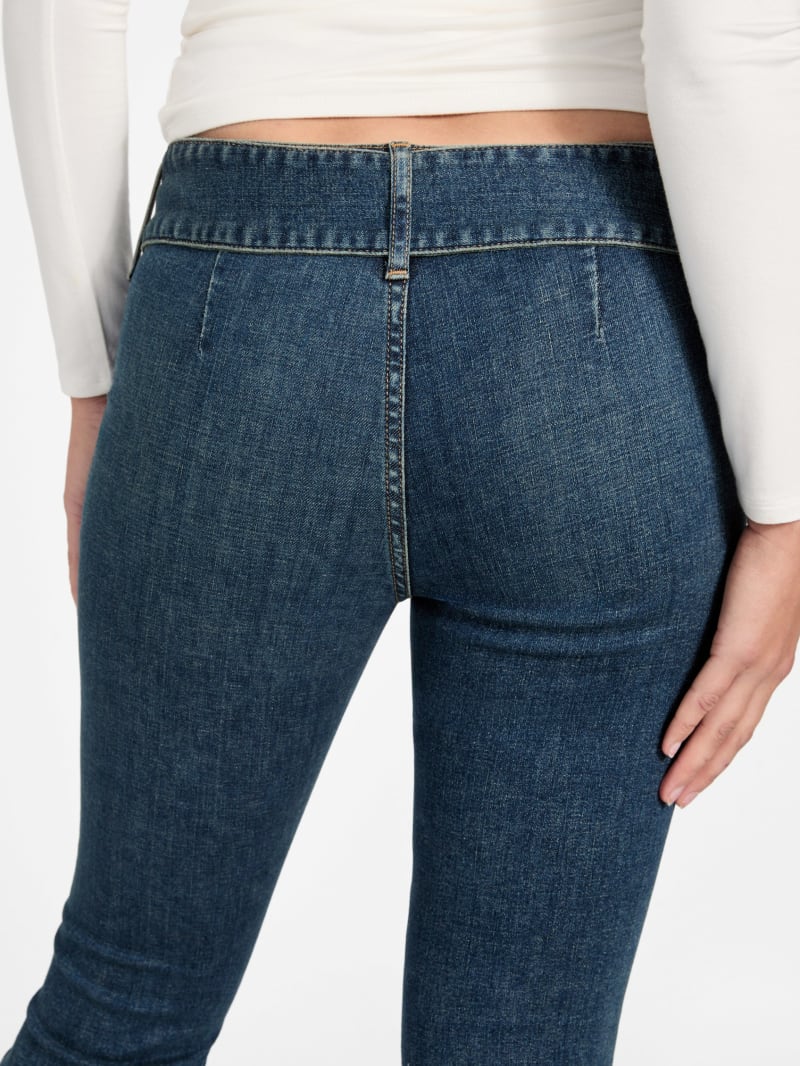 - Faded medium-wash indigo denim. Each garment has its own unique appearance.