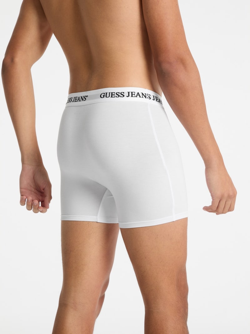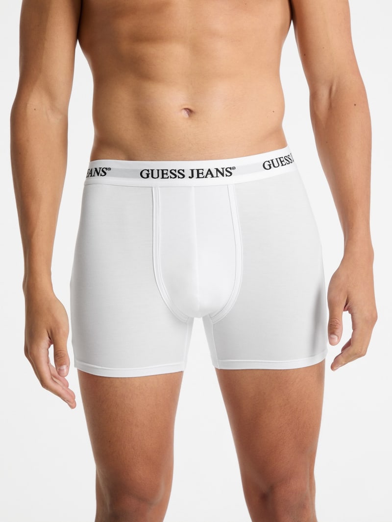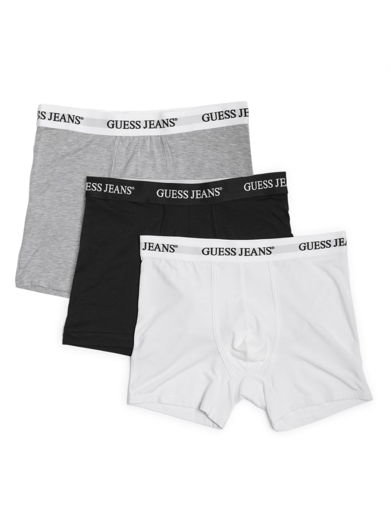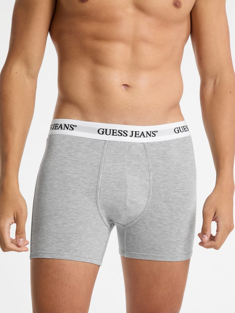 Essential comfort, times three. This set of constructed boxer briefs is made from a soft, stretch-knit organic cotton blend, featuring a supportive seamed front and logo-printed elastic band for a perfect fit.