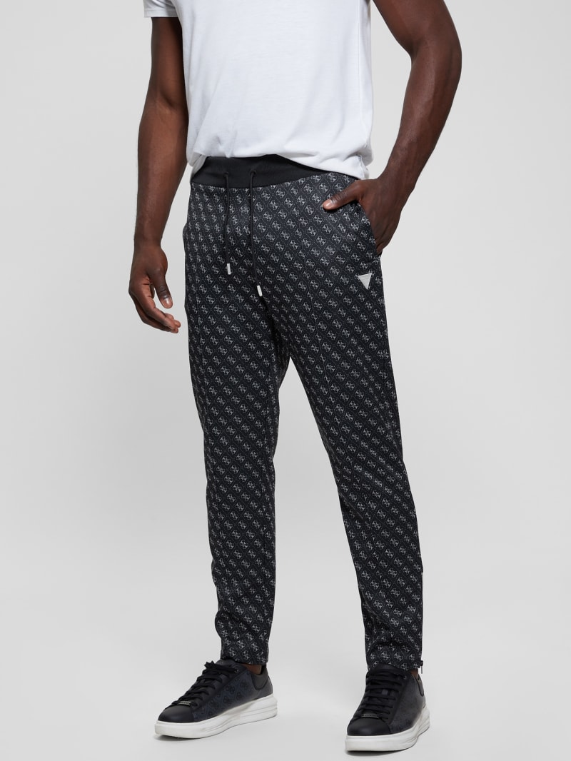 Add interest to your activewear with these knit polyester track pants featuring an allover Quattro G logo print, ribbed elastic waistband with drawstrings, slip pockets and ankle zippers. Made with recycled plastic.