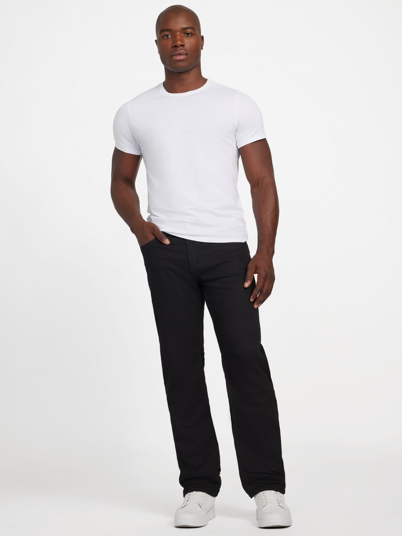- Mid rise, sits at hips. Regular fit and straight leg.