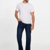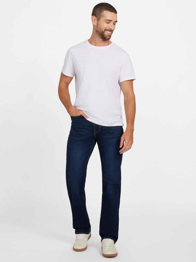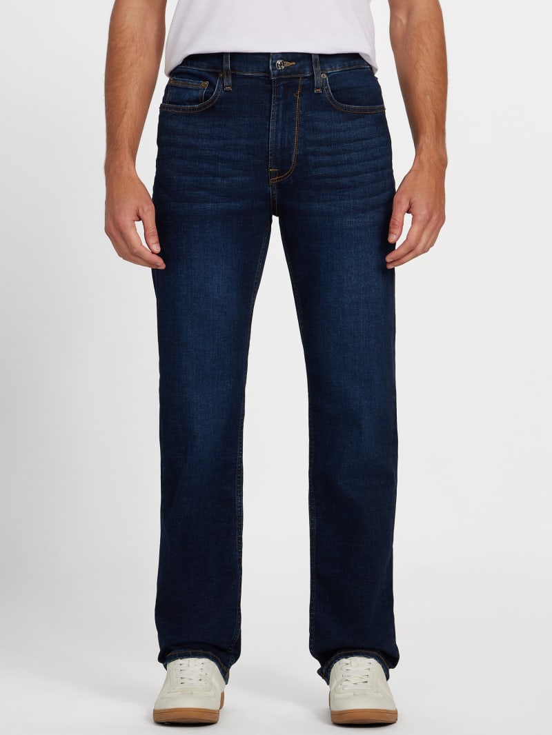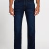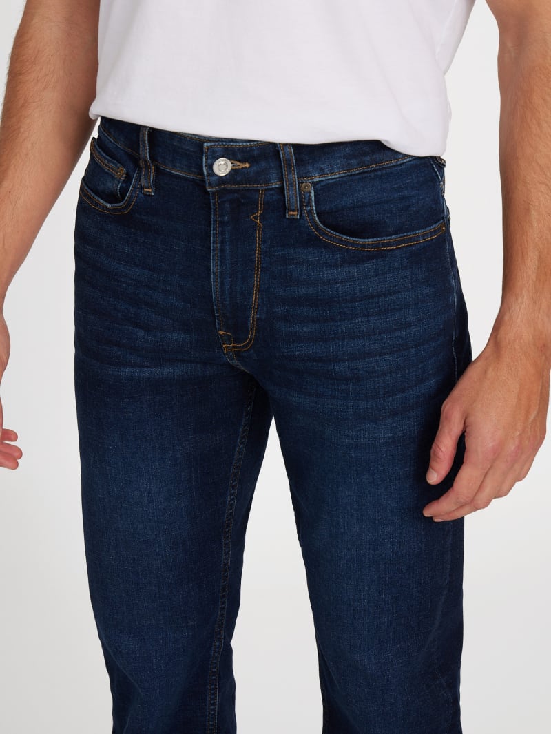 - Mid rise, sits at hips. Regular fit and straight leg.