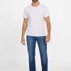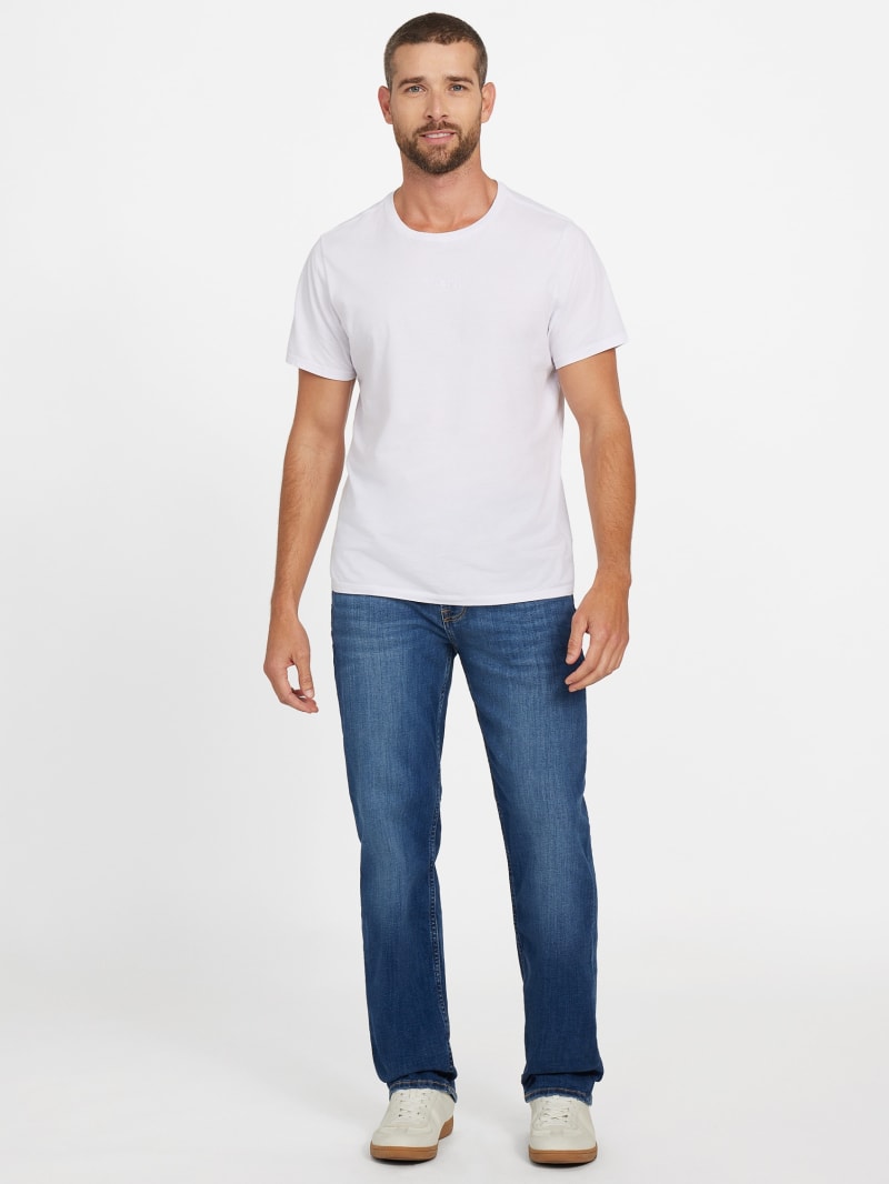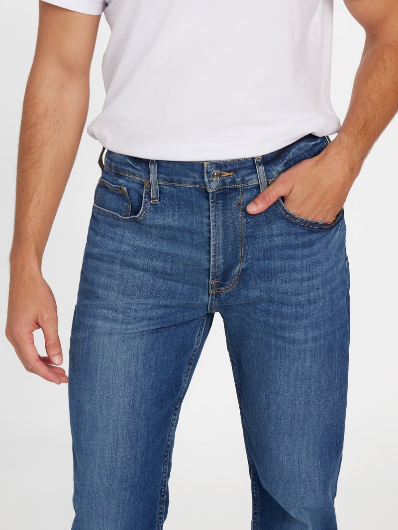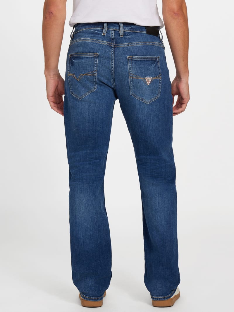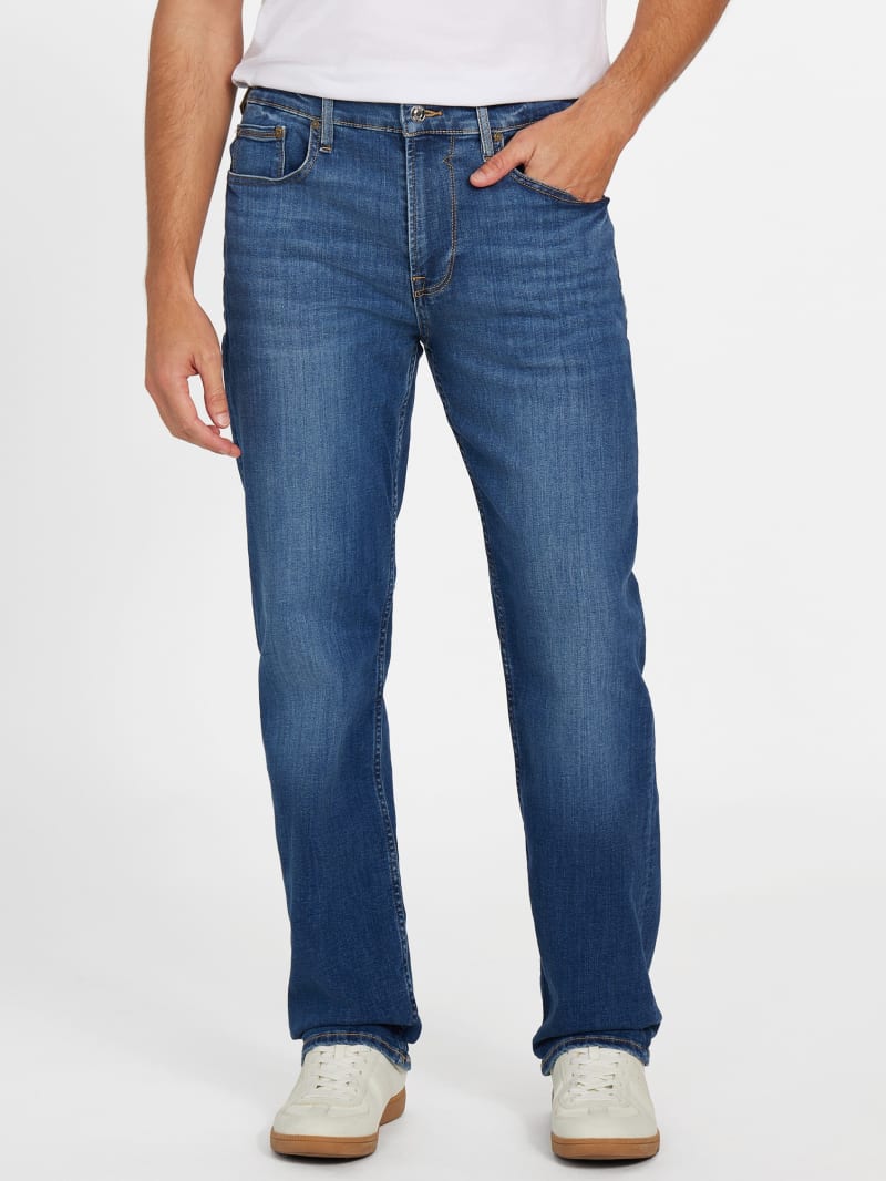 - Mid rise, sits at hips. Regular fit and straight leg.
