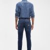 - Dark indigo wash with fading and whiskering. Each garment has its own unique appearance.