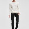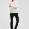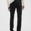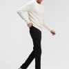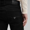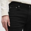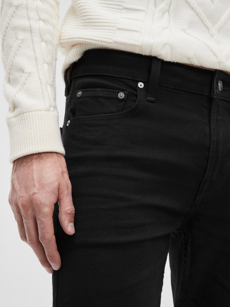 - Mid rise, sits at hips. Slim fit and tapered leg.