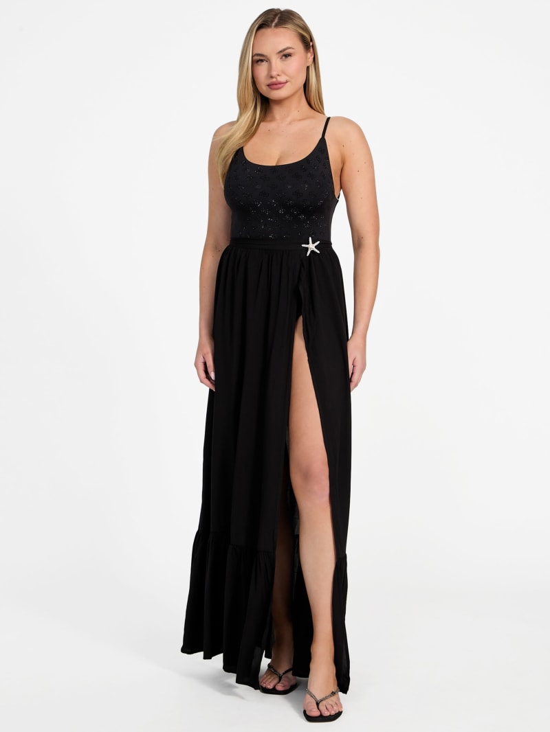 Incorporate this maxi skirt cover-up into your seaside agenda. Live out your mermaid dreams with its fun starfish accent and alluring slit.