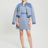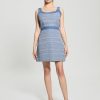 - Woven tweed & denim mini dress
