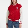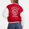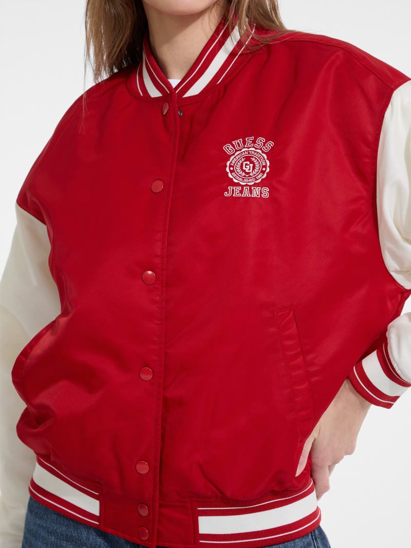 - Woven satin varsity jacket
