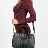 - Top handles with removable charm and 4" drop. Detachable crossbody strap with 22" drop.