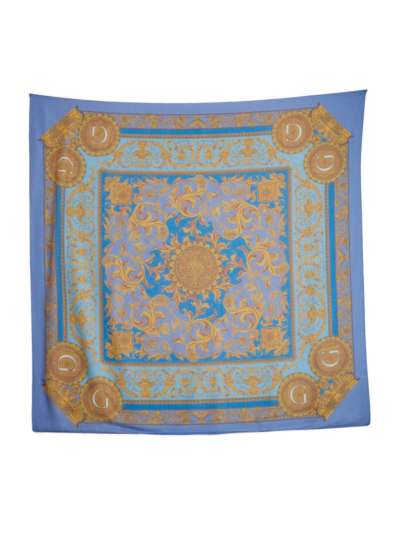 Lightweight and elegant, this sheer silk scarf comes with a baroque print and square design.