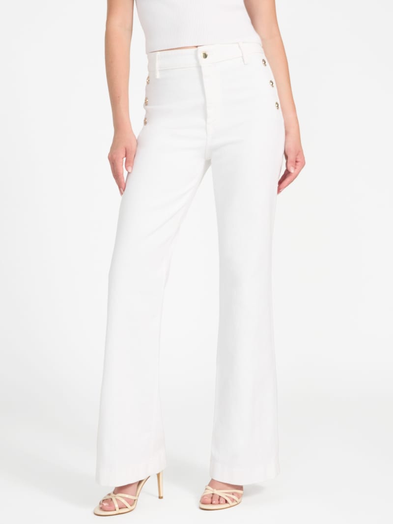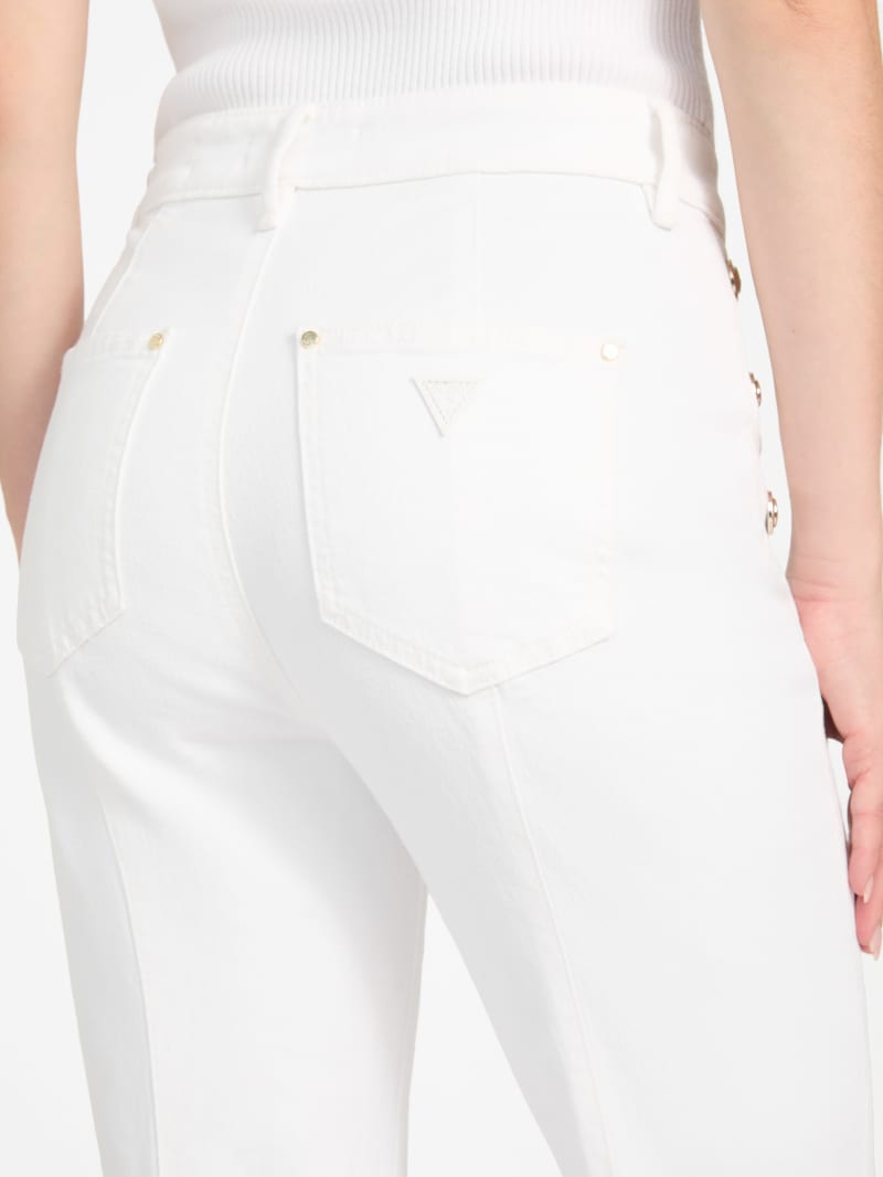 - High rise, sits at natural waist with sailor button details