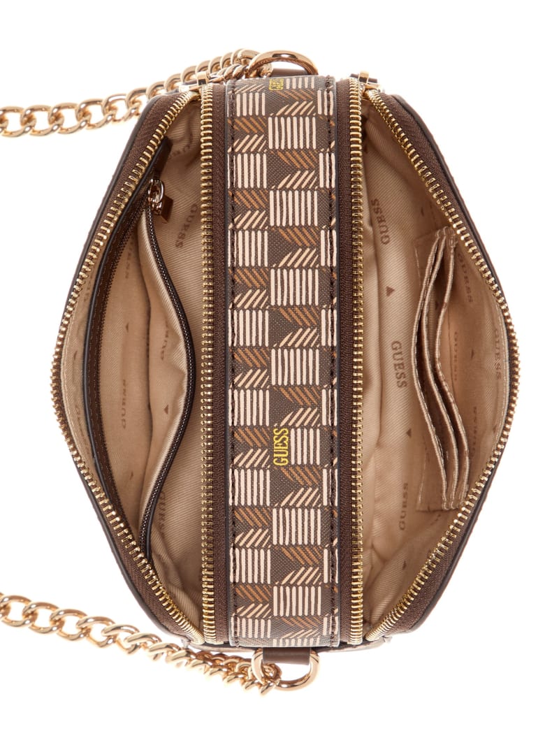 - Crossbody chain and faux-leather strap with 23.5" drop