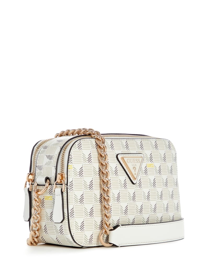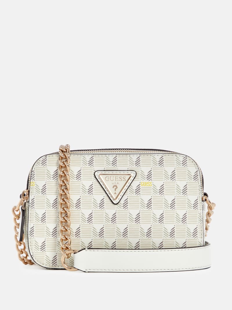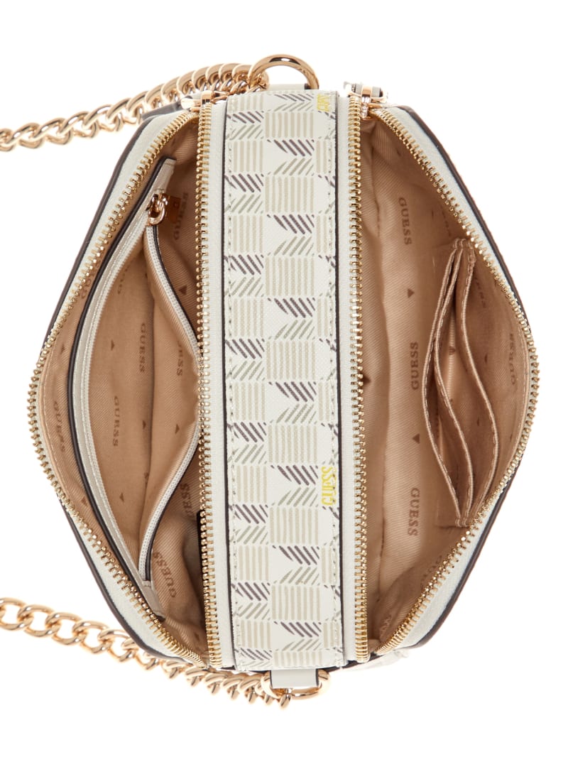- Crossbody chain and faux-leather strap with 23.5" drop