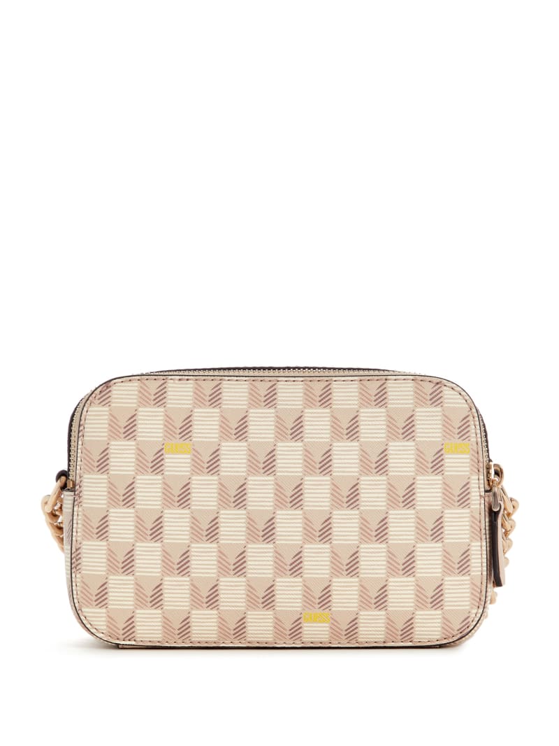- Crossbody chain and faux-leather strap with 23.5" drop