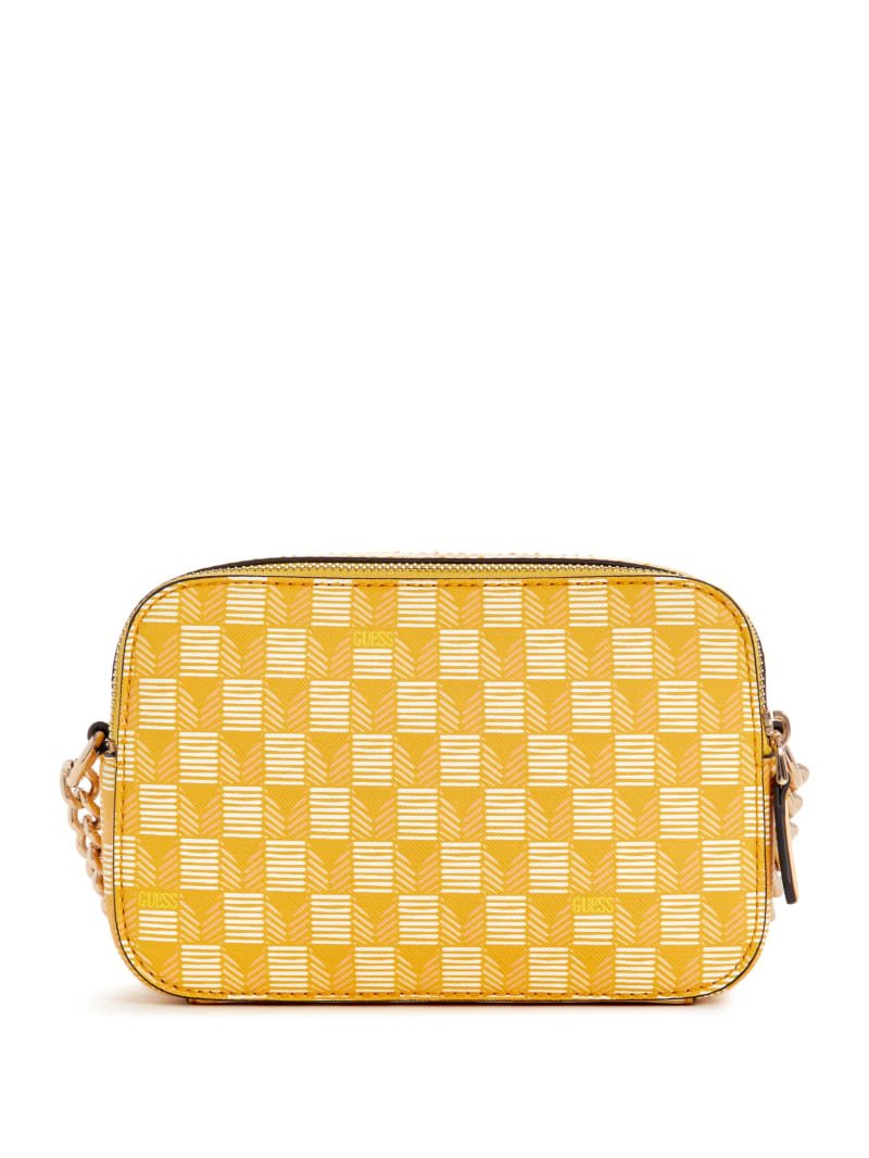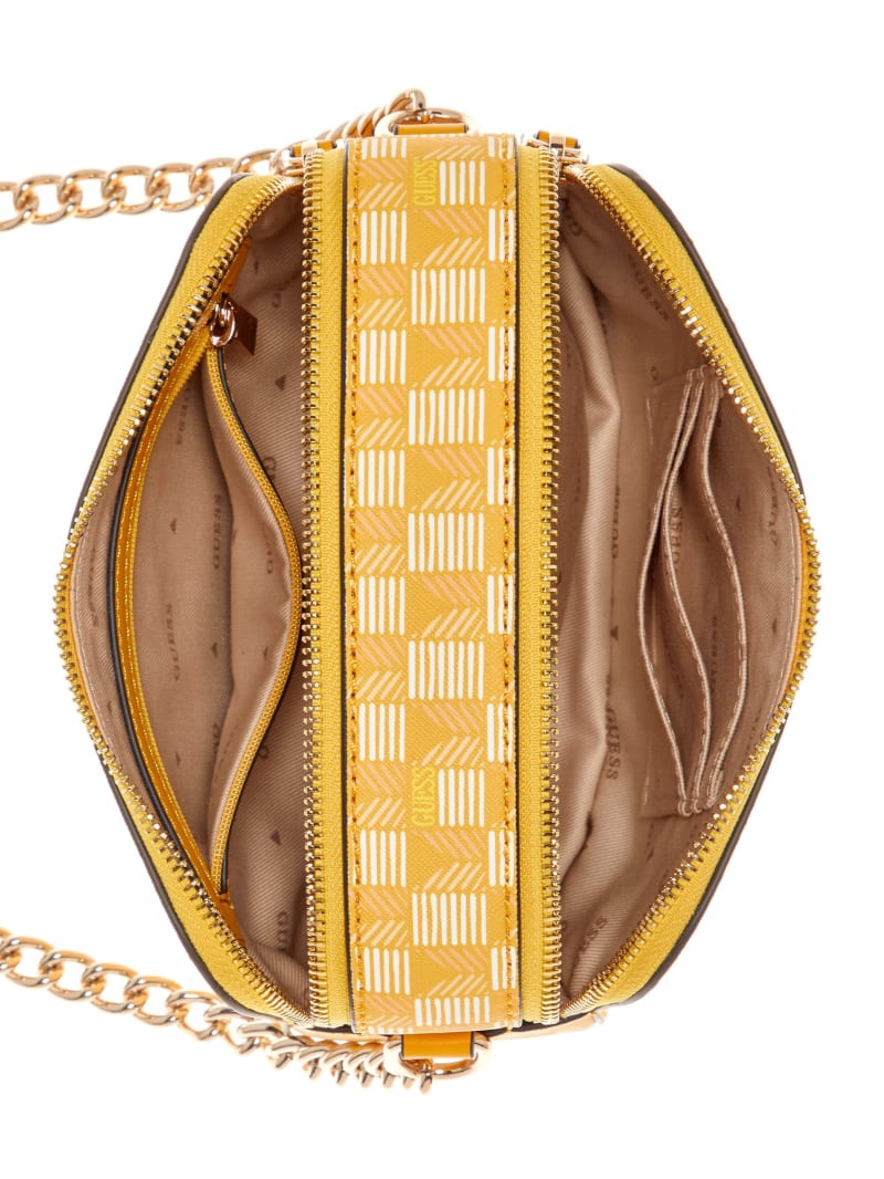 - Crossbody chain and faux-leather strap with 23.5" drop