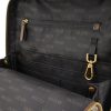 - Antique bronze-tone hardware and raised enamel emblem