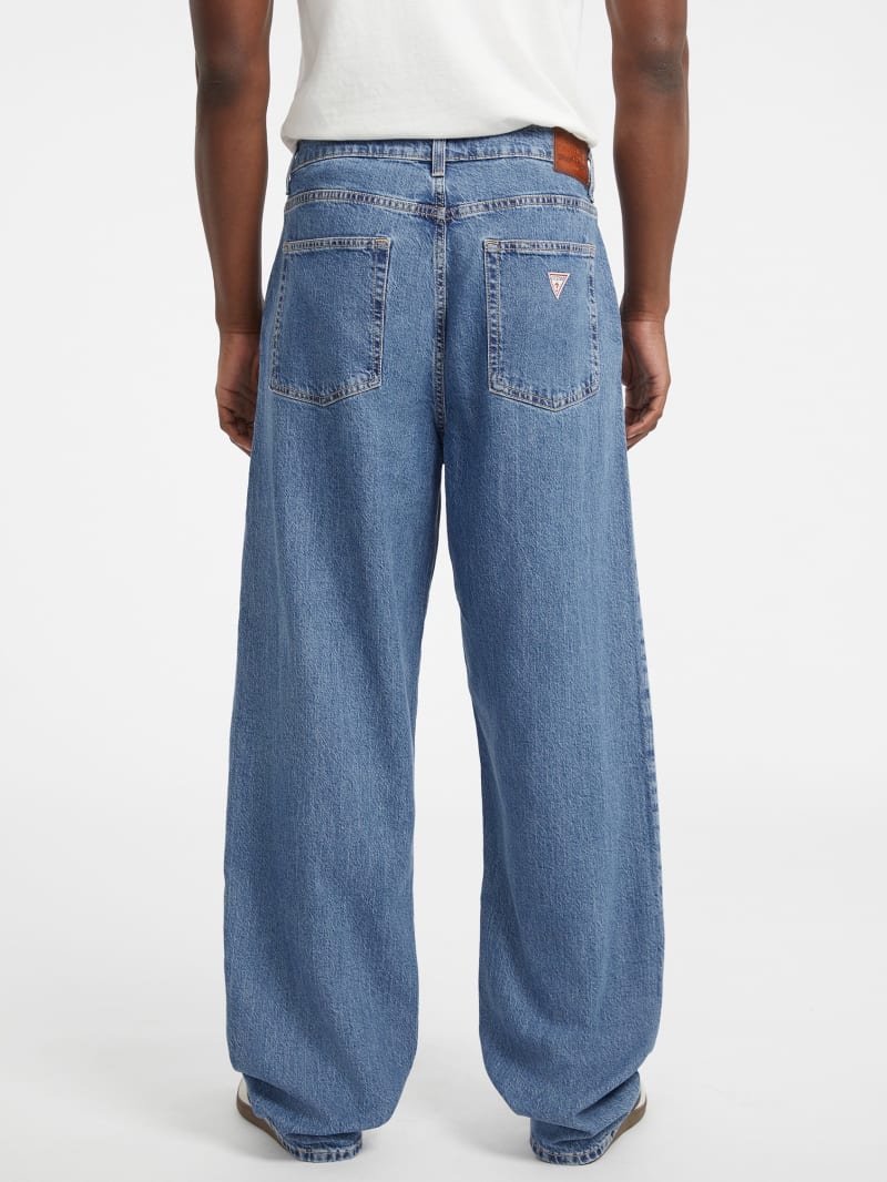 - Dropped rise, sits at hips. Super baggy fit and leg.