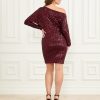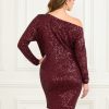 - Asymmetrical off-shoulder neckline
