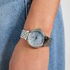 - Crystal and Roman numeral hour markers
