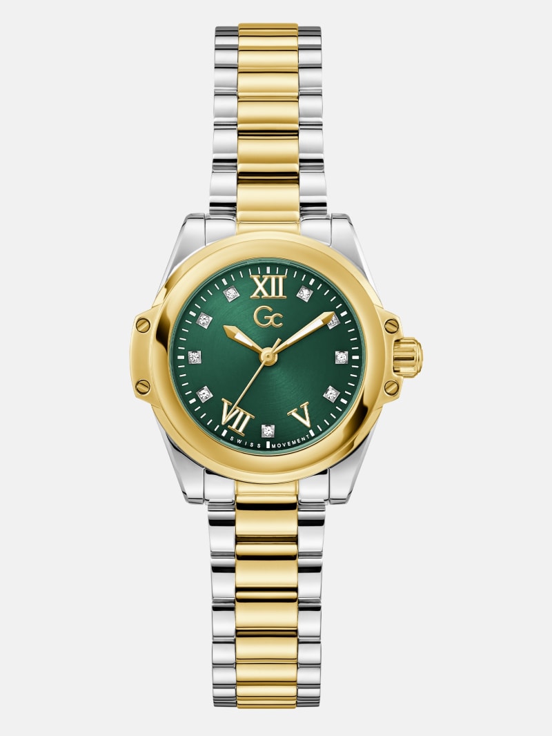 - Green dial with crystal and Roman numeral hour markers