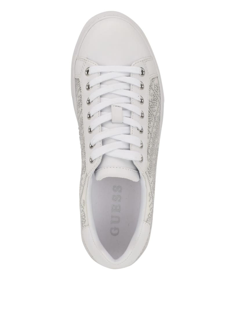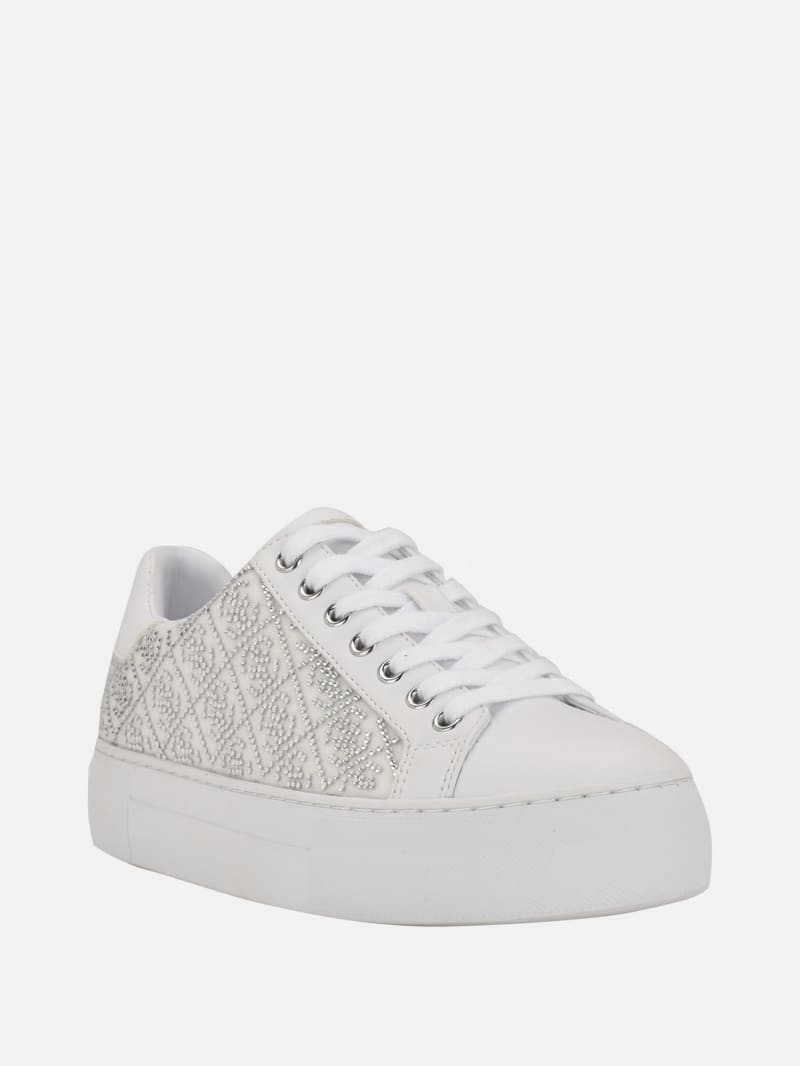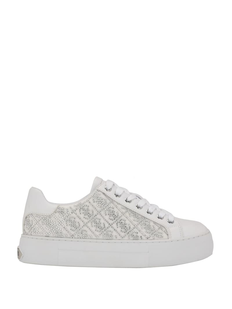 Add a touch of shine to your casual look with these low-top sneakers featuring Quattro G rhinestone embellishments and a rubber sole. Lace-up closure.