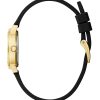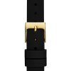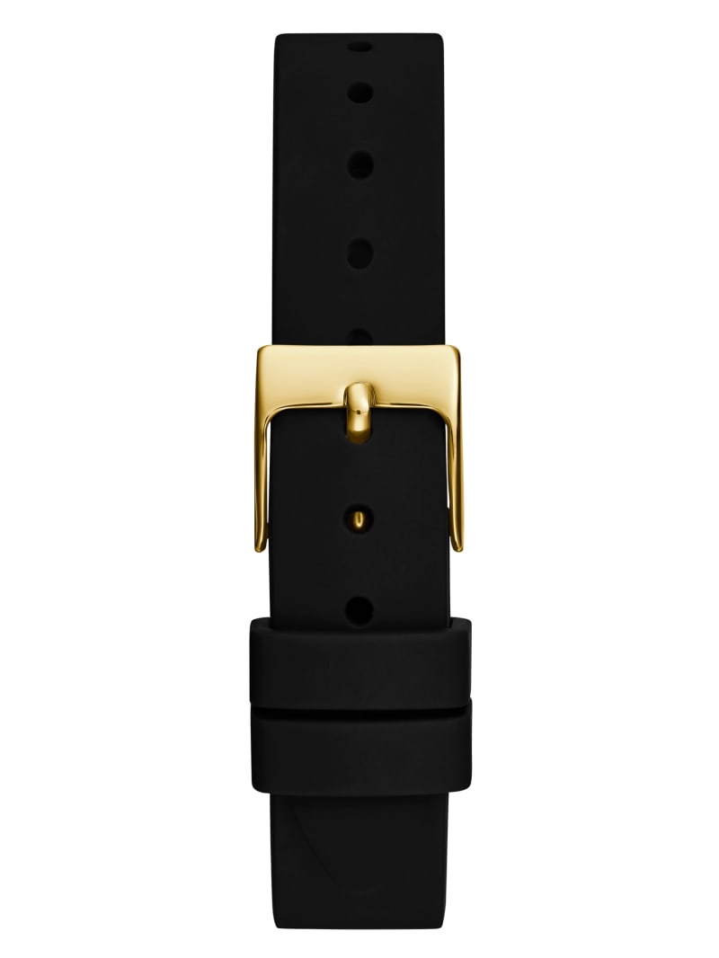 Add a subtle touch to your look with this minimalist timepiece featuring a polished gold-tone dial with delicate hour markers and a flexible black silicone strap.